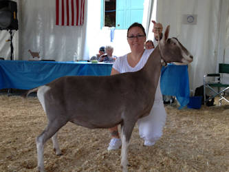 Senior Doe/Best of Breed): SGCH Happy Thought Farm AHTP Leah, Frank Reserve Grand Champion Sr. Doe: Happy